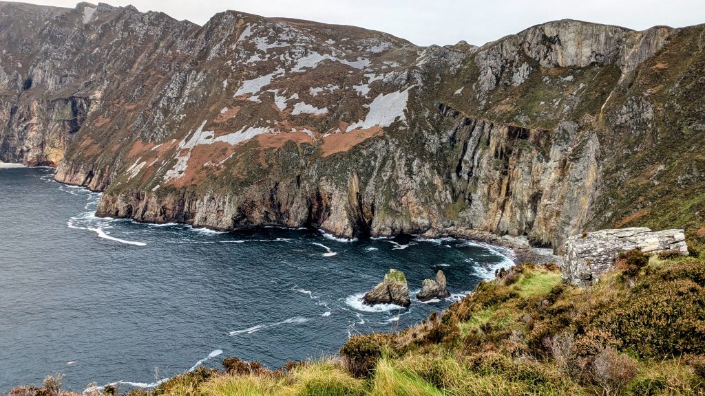 Von dort führte mich mein Weg weiter zu den Slieve League – oder Sliabh Liag, wie sie auf Irisch heißen. Laut irischen Tourismusinformationen gelten sie mit rund 600 Metern als die höchsten Meeresklippen Europas. Das mag so sein. Doch Höhe allein ist nicht alles. Nach meinem Empfinden fehlt ihnen jene Dramatik der Kerry Cliffs, die ich bislang als die eindrucksvollsten erlebt habe – besonders dann, wenn bei aufgewühlter Brandung die Gischt des Atlantiks mit voller Wucht an ihnen zerschellt.